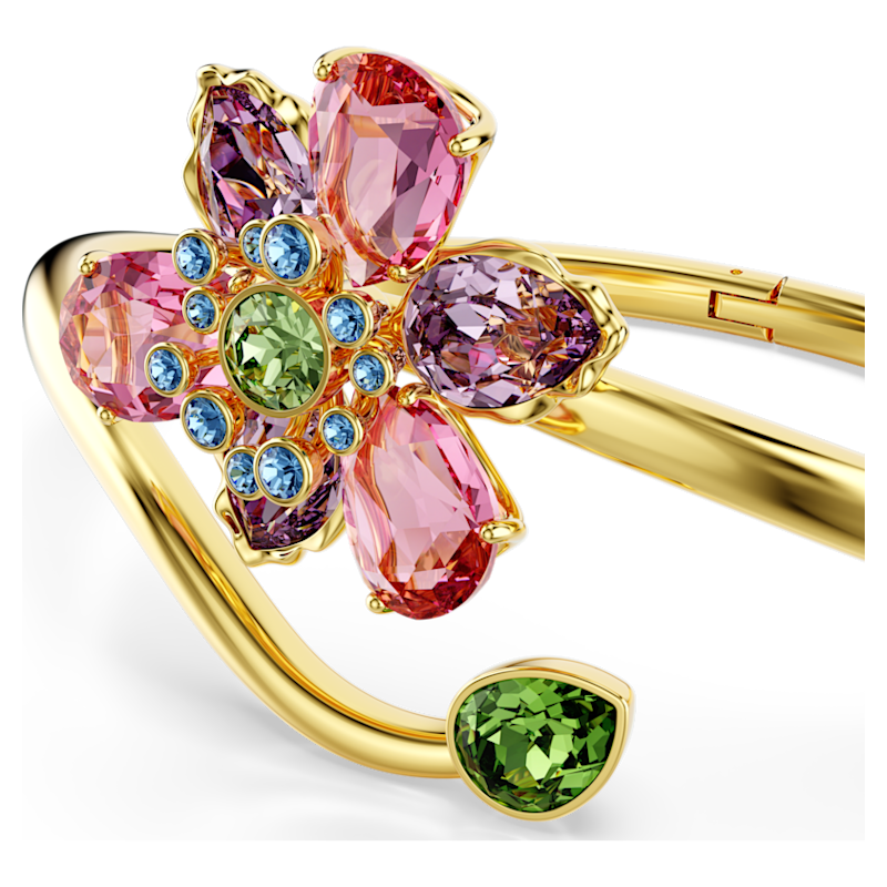 Luminoso, delicato e bellissimo. Questo magico bangle Idyllia avvolge il polso con uno stelo a spirale placcato in tonalità oro e presenta un motivo floreale centrale, sapientemente realizzato con una varietà di cristalli in diverse forme e colori. Una chiusura Wonderclick nella parte inferiore garantisce una vestibilità perfetta. Indossa questo bangle insieme ad altri gioielli Idyllia ogni volta che hai bisogno di infondere la tua giornata di un tocco di gioia in più.