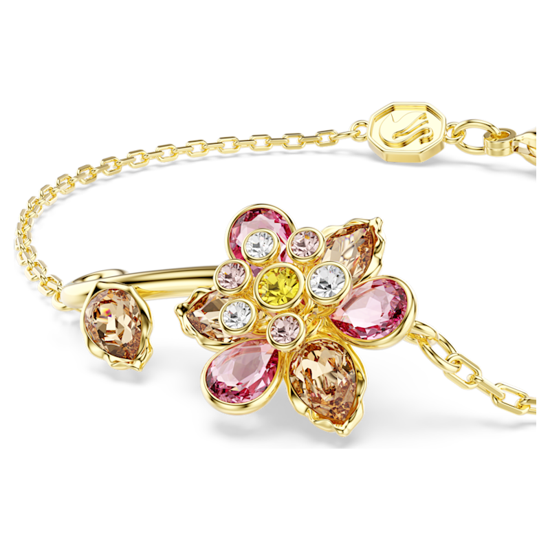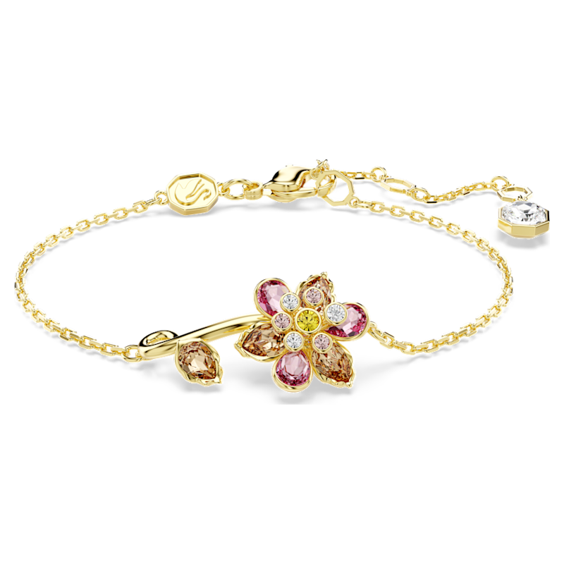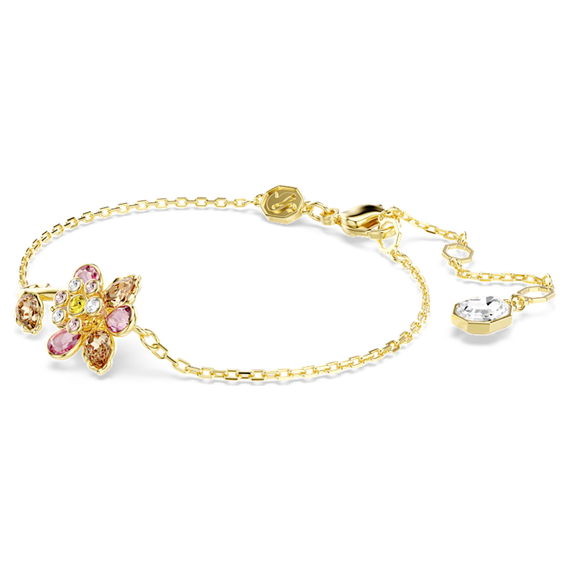 Esprimi il tuo legame con la natura con questo luminoso e delicato bracciale Idyllia. Su una catena placcata in tonalità oro, il motivo centrale svela un bel fiore realizzato con cristalli di vari tagli e delicate tonalità, tra cui la singola foglia sul gambo a spirale. Un gancio a moschettone e il ‘prolungamento consentono di regolare questo bracciale alla propria misura. Indossalo con altre meravigliose creazioni del giardino Idyllia per coordinare il tuo look.