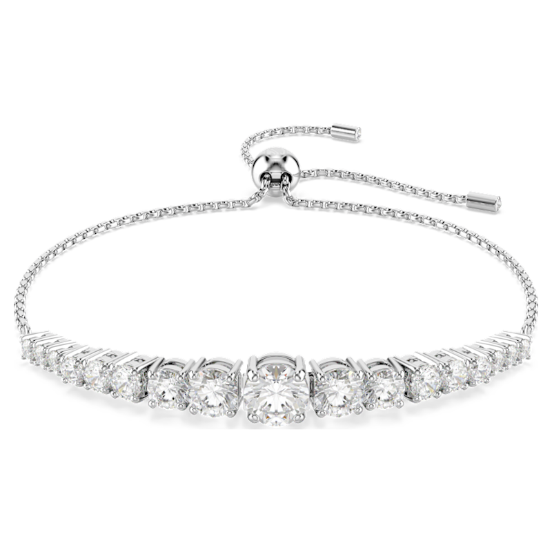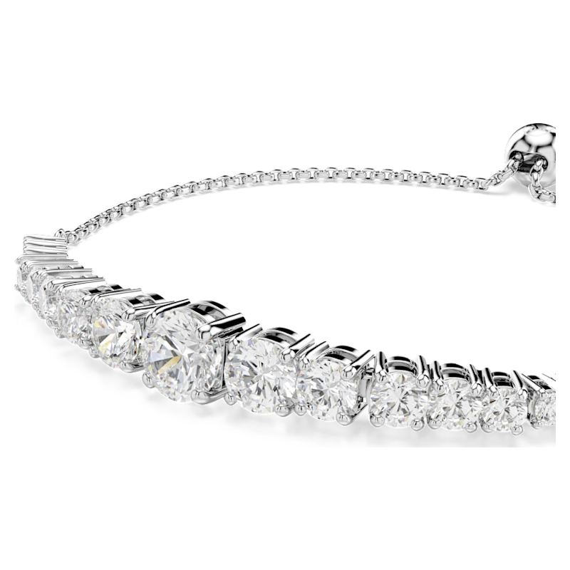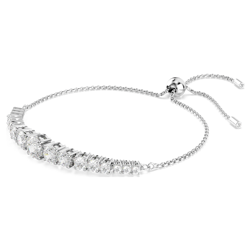 Questo radioso bracciale Matrix Tennis è il modo perfetto per far risplendere il tuo stile personale. Indossato su una delicata catena con una chiusura a sfera scorrevole, il design placcato rodio è impreziosito da una gradazione di Swarovski Zirconia taglio Round, ognuna sfaccettata per riflettere la luce in modo meraviglioso. Esalta il look lussuoso abbinando il gioiello a un set di orecchini o a una collana coordinati.
