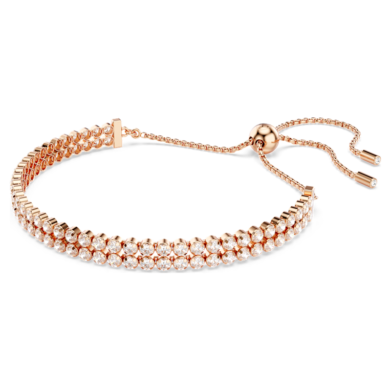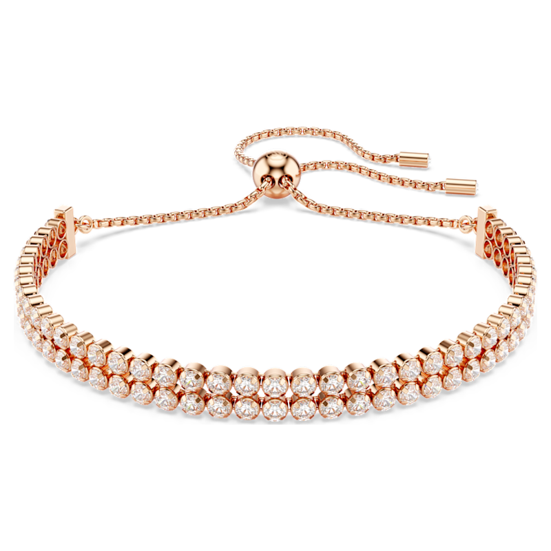 Questo intramontabile bracciale placcato in tonalità oro rosa è l’idea regalo perfetta per gli amanti della luce. Due delicati fili di Swarovski Zirconia sono incastonati in un elegante design cupchain, che avvolge magnificamente il polso. Il gioiello è poi rifinito con un’innovativa chiusura a sfera scorrevole, che consente di regolarne le dimensioni per una vestibilità perfetta. Indossa questo bracciale per un tocco di raffinatezza per il giorno o per accendere il glamour di sera, abbinandolo a stili a contrasto.