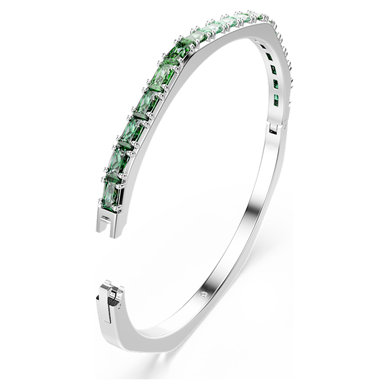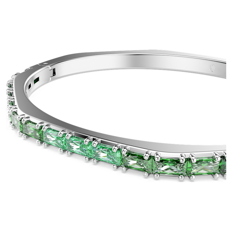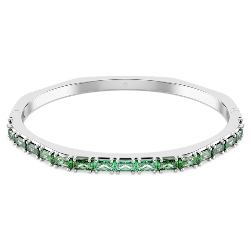 Accendi il tuo look quotidiano con questo bangle Matrix con cerniera. Il design placcato rodio è realizzato nell’emblematica forma ottagonale di Swarovski ed è decorato in modo giocoso con una sfumatura di Swarovski Zirconia verdi taglio Baguette incastonate orizzontalmente. Perfetto da abbinare ad altri bangle Matrix, è un tripudio del colore distintivo di Swarovski per esprimere al meglio la tua personalità più vivace.