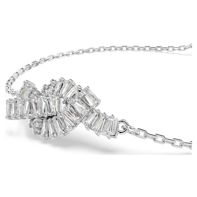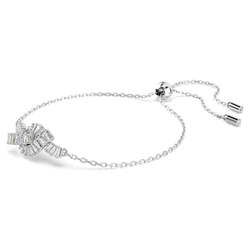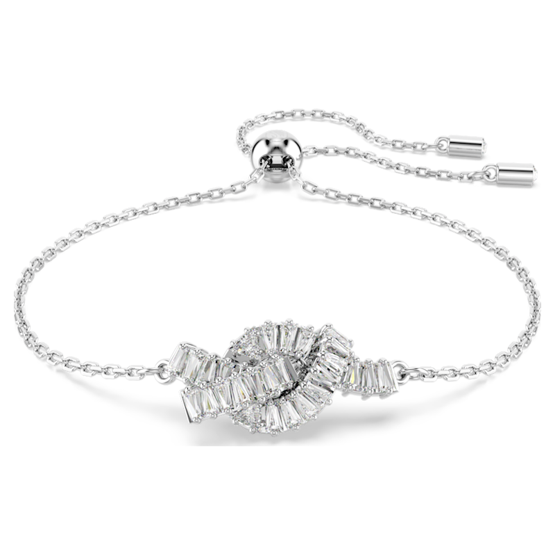 Questo bracciale intrecciato è pura espressione di luce e unità. Caratterizzato da una catena con meccanismo scorrevole regolabile, il motivo placcato rodio si ispira ad un nastro e presenta una decorazione intrecciata di Swarovski Zirconia taglio Baguette. Delicato ed elegante, è una scelta artistica da indossare insieme a gioielli coordinati della stessa famiglia.
