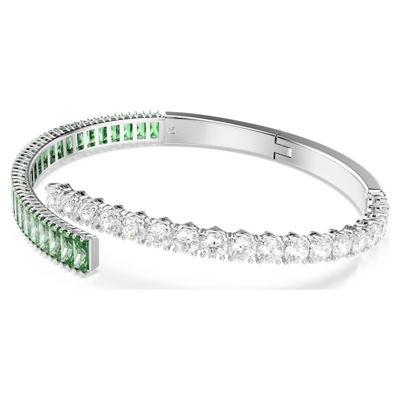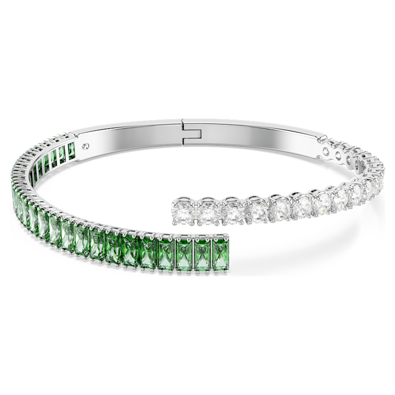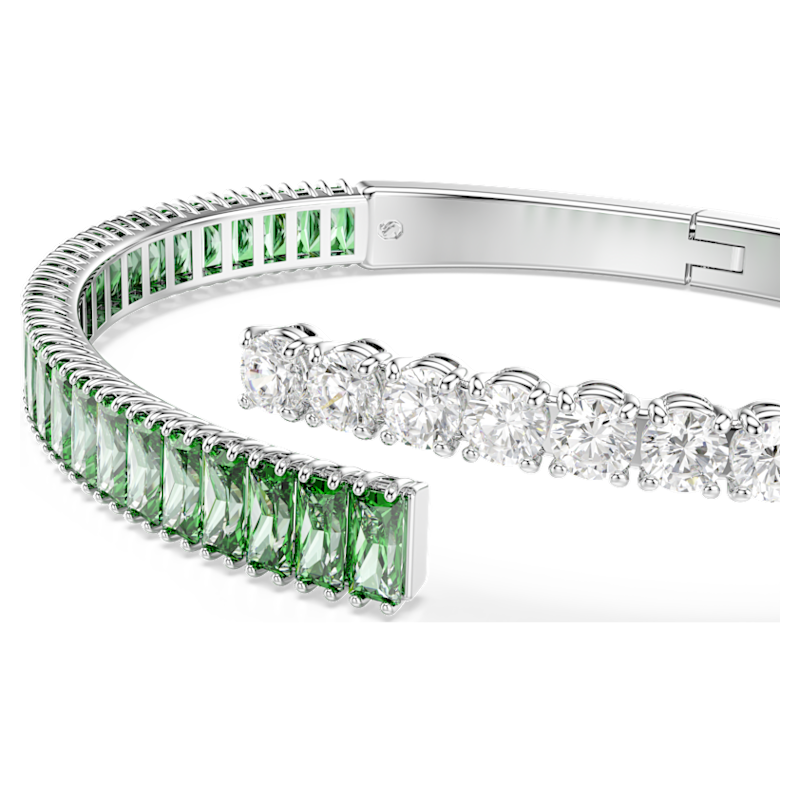 Colorato, energico ed espressivo, questo bangle Matrix è un modo gioioso per giocare con gli accessori. La fascia sovrapposta è placcata rodio e presenta Swarovski Zirconia trasparenti e verdi con tagli Round e Baguette. Una scelta vivace che si abbina splendidamente all’anello e agli orecchini coordinati.