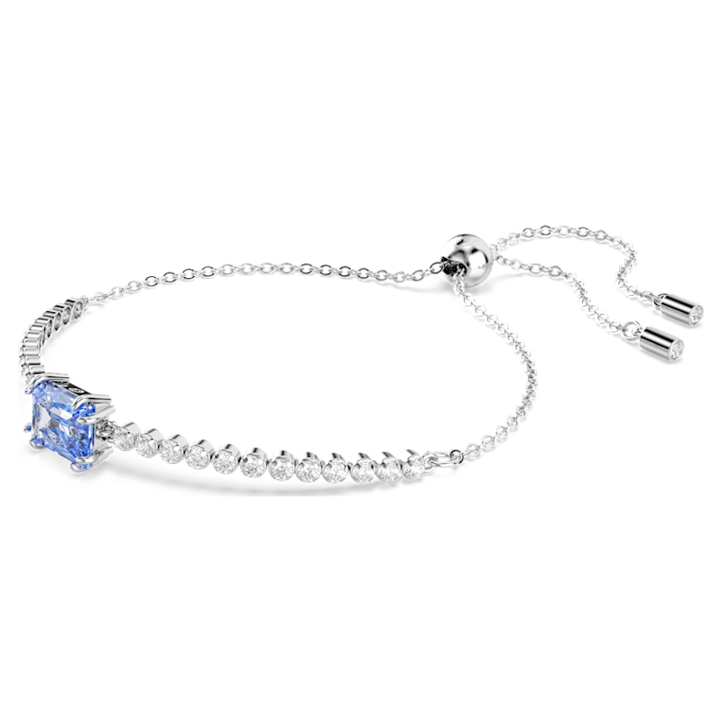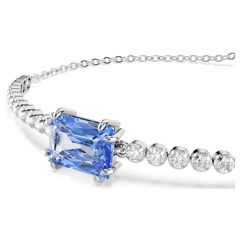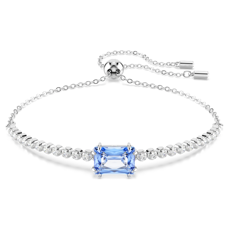 Aggiungendo una nota di radiosità ad ogni look, questo classico bracciale Tennis combina Swarovski Zirconia trasparenti ad un tocco di colore. Dotato di una chiusura scorrevole, il gioiello placcato rodio presenta una fila uniforme di Swarovski Zirconia trasparenti ed è impreziosito da una Swarovski Zirconia blu dal taglio Baguette al centro. Una vivace interpretazione di stile intramontabile.