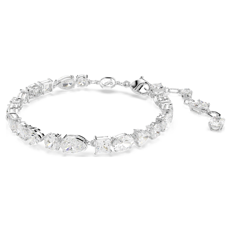 Lasciati conquistare dalle forme inaspettate e assortite di questo bracciale Mesmera. Il design placcato rodio è realizzato con una serie di affascinanti Swarovski Zirconia, tutte presentate in un sorprendente mix di tagli e dimensioni. Per un comfort aggiuntivo, il prolungamento è completato da un gancio a moschettone e da tre impostazioni regolabili. Questo bracciale può essere abbinato alla collana Mesmera coordinata ed è un’idea regalo radiosa per una persona speciale.
