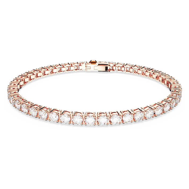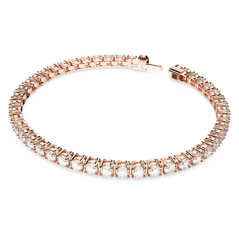 Braccialetto Matrix Tennis, Taglio Round, Bianco, Placcato color oro rosa