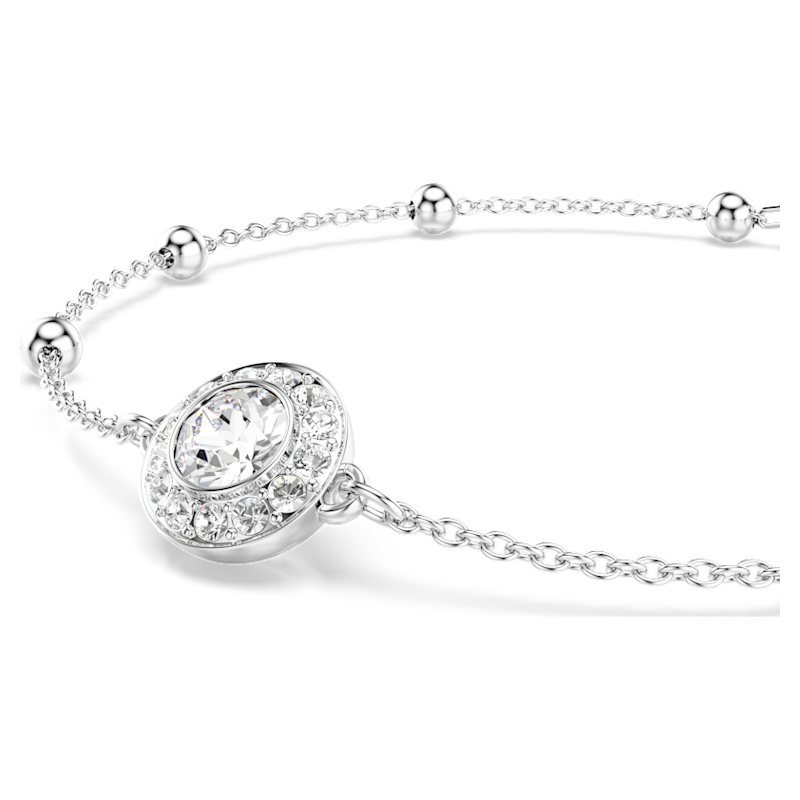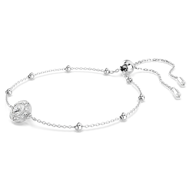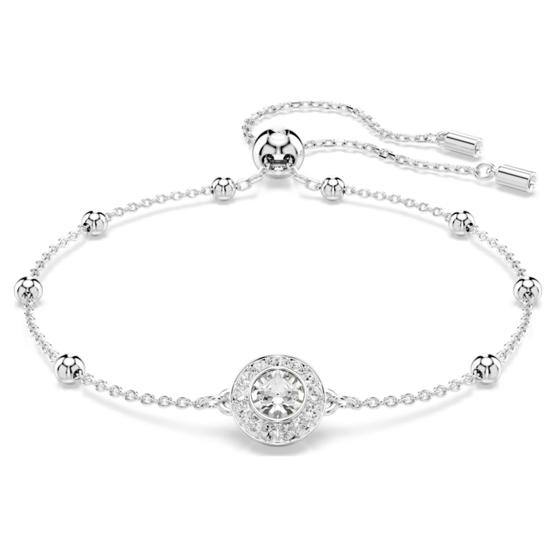 Questo innovativo bracciale può essere indossato in due modi unici. La catena placcata rodio è dotata di un meccanismo scorrevole per una vestibilità facilmente regolabile ed è impreziosita da sfere metallizzate e un luccicante motivo double face. È sufficiente capovolgere il bracciale per esibire una diversa disposizione di cristalli taglio Round. Abbinalo ad altri gioielli Una Angelic per un look dalla radiosità impareggiabile.