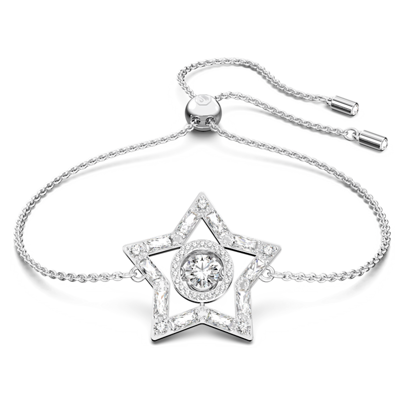 L’iconico emblema della stella forma il motivo centrale di questo delicato bracciale, ispirato alla magia del paesaggio austriaco. Rifinito con dettaglio Dancing Stone, questo oggetto è un’interpretazione contemporanea di una ricca tradizione della gioielleria. Indossalo da solo o con gli orecchini e il pendente coordinati della linea Stella. Parte della linea Stella, questo bracciale è firmato dalla Direttrice creativa Giovanna Engelbert per la Collection II.