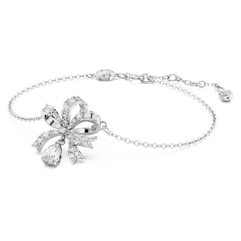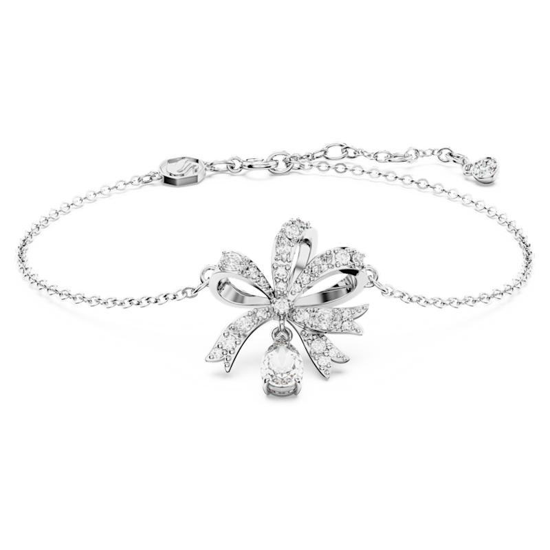 Questo bracciale Hyperbola fa una grande figura anche nei suoi più piccoli dettagli. Di una bellezza assoluta, presenta un design placcato rodio a forma di fiocco, impreziosito da cistalli Cry montati utilizzando la tecnica dello chattonage. Una singola pietra pendente a forma di pera conferisce a questo gioiello un brillante tocco finale. Indossalo con un paio di orecchini assortiti per un look armonioso oppure sceglilo per un regalo che viene dal cuore.