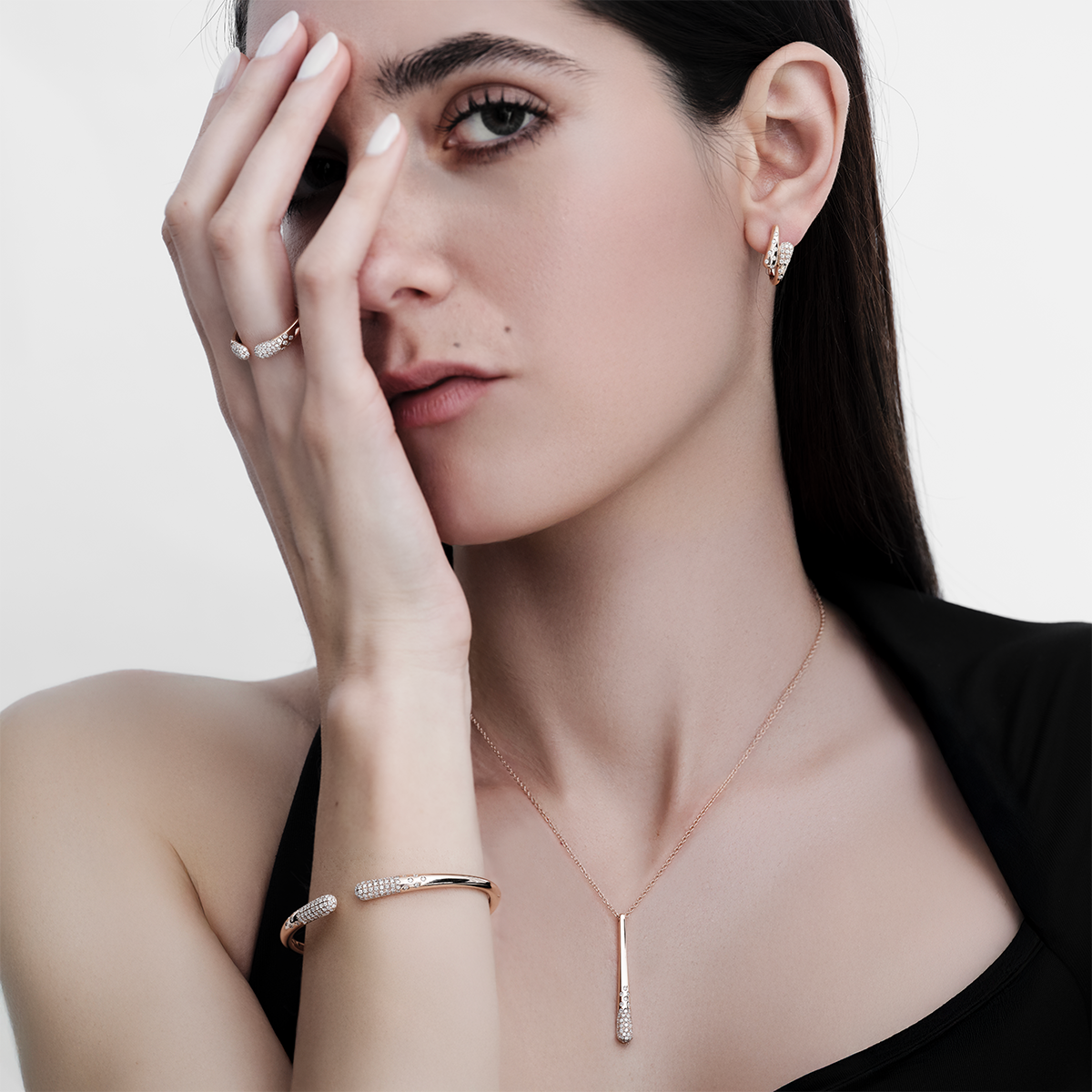 Il bracciale Bubble in oro rosa e diamanti rappresenta una dichiarazione di stile in chiave moderna.