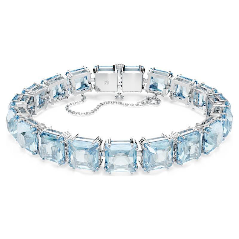 Bracciale Tennis Millenia, Taglio squadrato, Medio, Blu, Placcato rodio - Fabiani Gioiellerie
