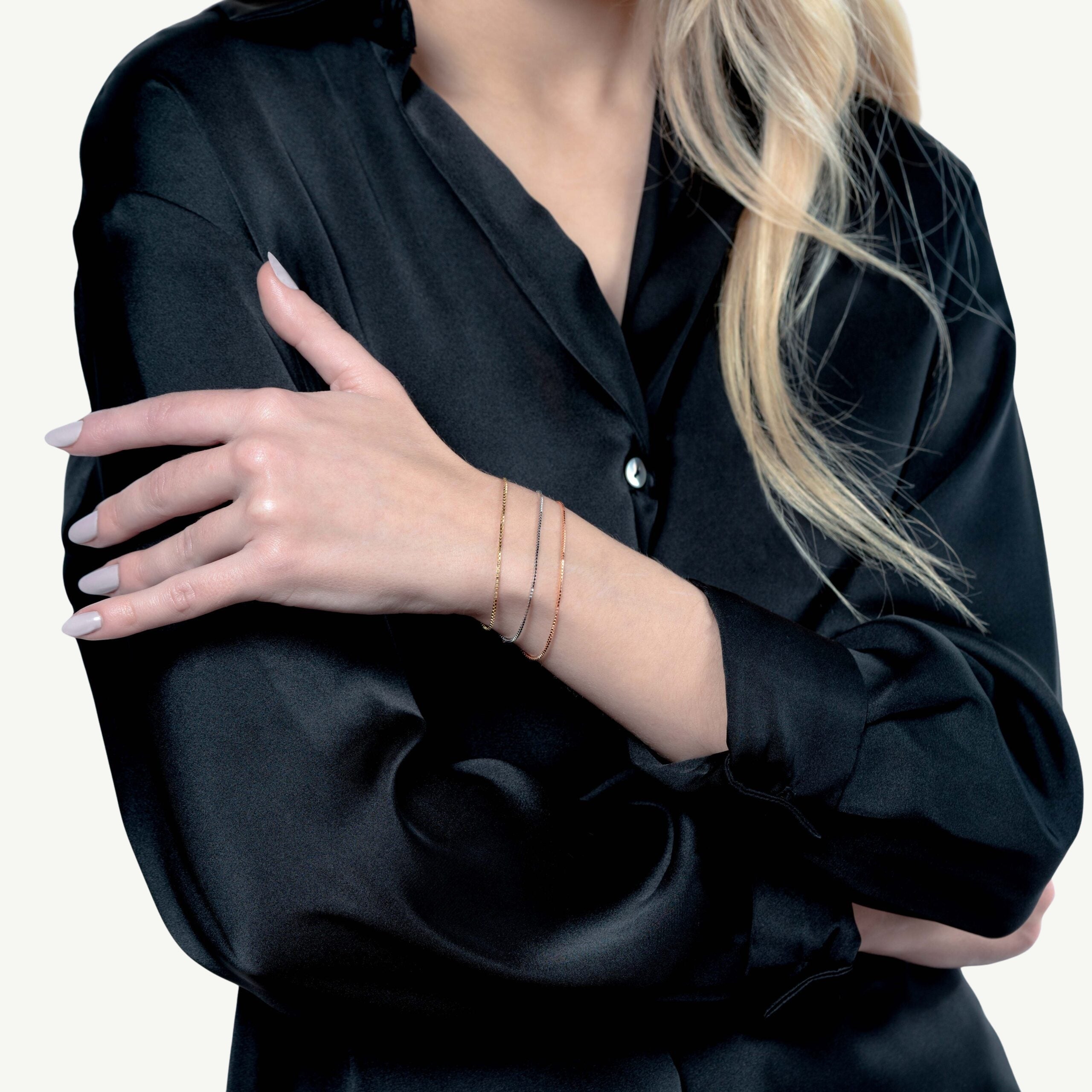 Il Bracciale Love Fabiani, realizzato in oro giallo 18Kt con elegante maglia veneziana, è progettato per essere saldato direttamente al polso. La saldatura è inclusa nel prezzo.