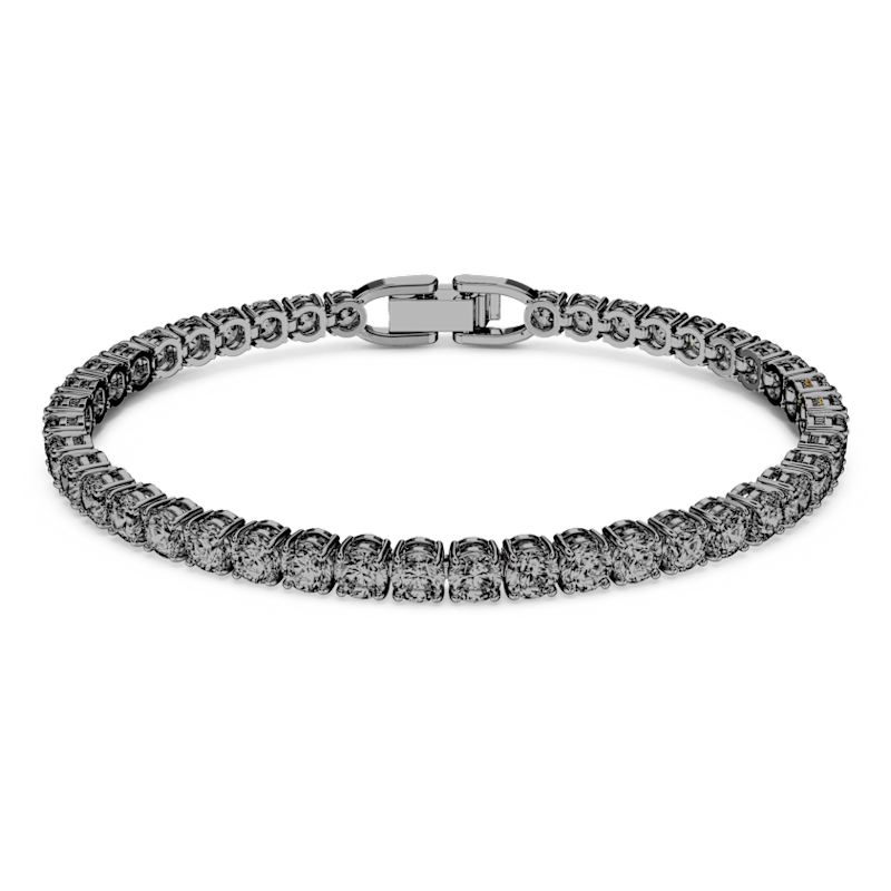 Ricco di soffuso scintillio e con un tocco contemporaneo, questo classico bracciale Tennis placcato rutenio è perfetto da rendere più o meno formale. Presenta un delicato strand di cristalli rotondi incastonati a griffe in una sfumatura di grigio scuro. Un “must” elegante e minimalista da indossare tutti i giorni.