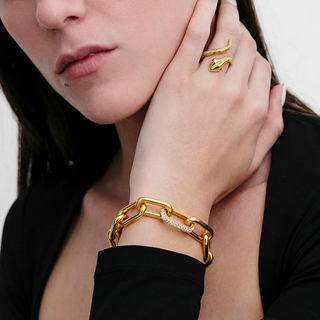 Bracciale Fabiani in argento 925 dorato maglia grumetta con dettaglio pavé