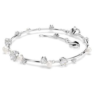 Bracciale rigido Constella, Crystal Pearl, tagli Round, Bianco, Placcato rodio