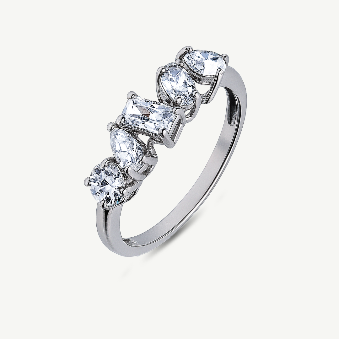 L’anello Riviera Fabiani in oro bianco 14Kt con zirconi è il simbolo della luce e dell’eleganza senza tempo.