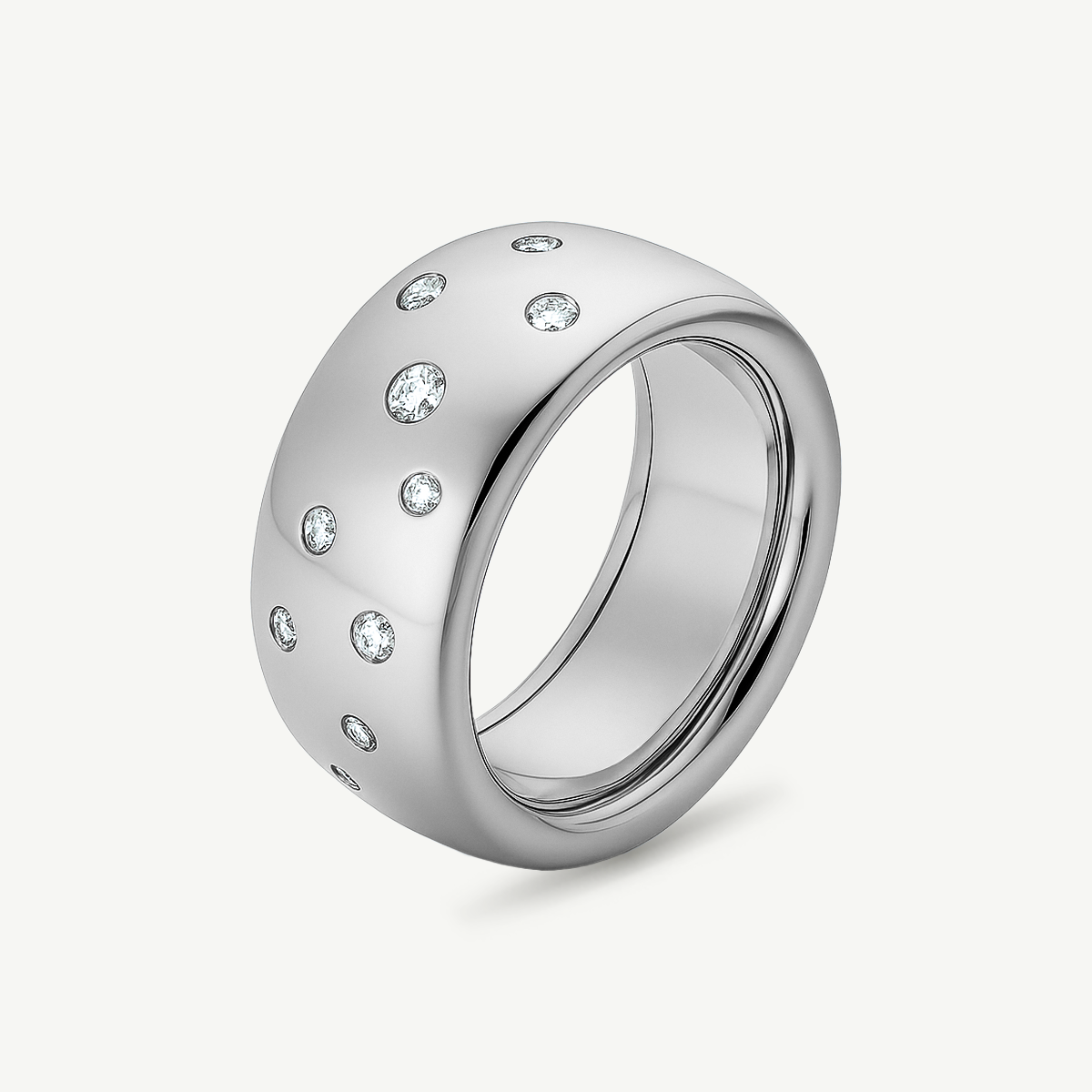 L’anello Bubble Fascia in oro bianco con diamanti è più di un gioiello: è una dichiarazione di stile.