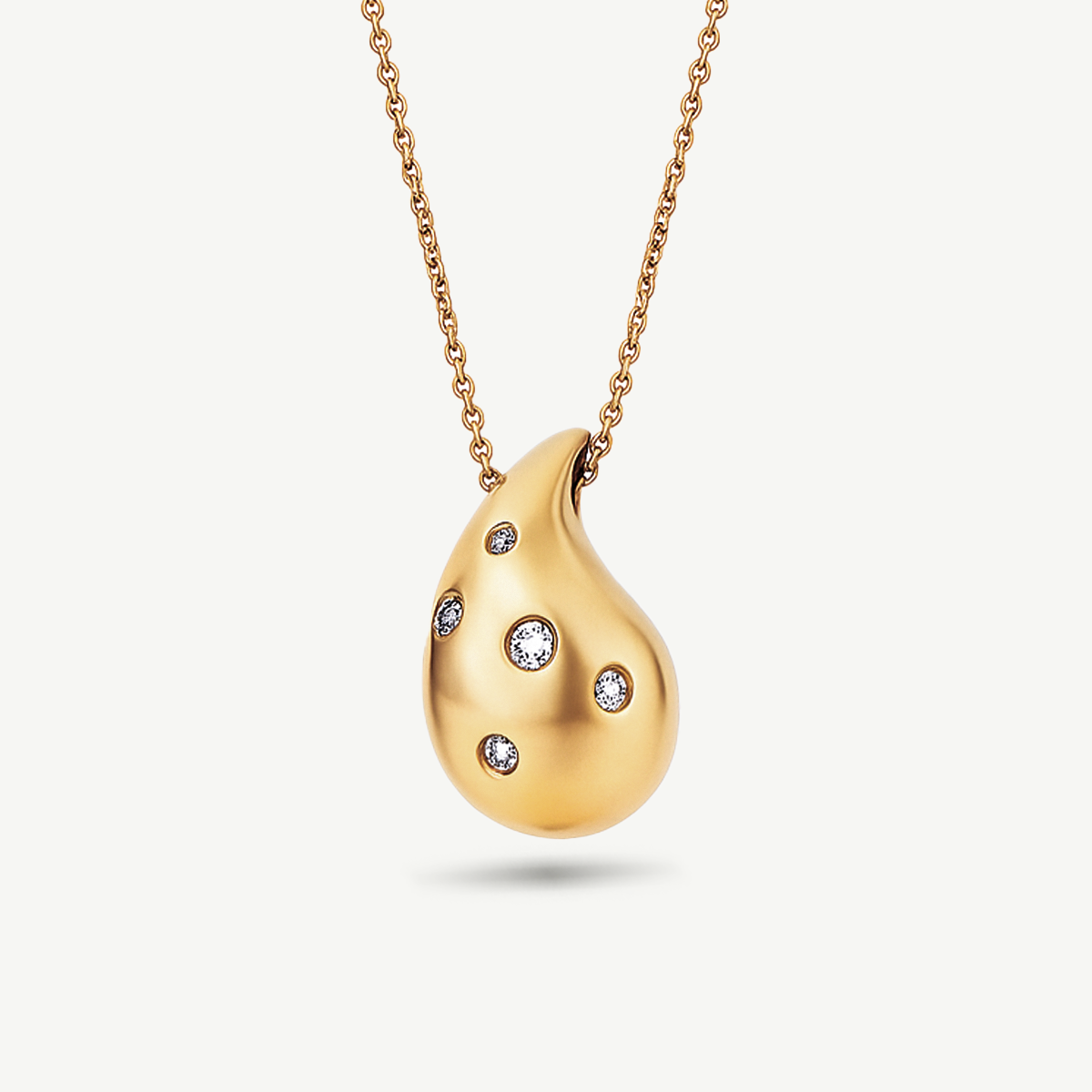 Il girocollo Bubble con ciondolo a goccia in oro rosa e diamanti è un simbolo di raffinata modernità.
