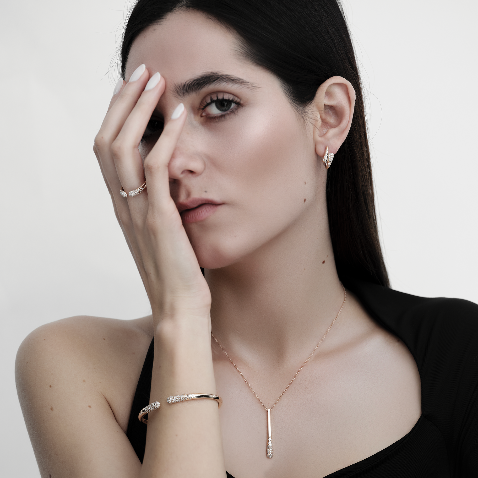 Il bracciale Bubble in oro rosa e diamanti rappresenta una dichiarazione di stile in chiave moderna.