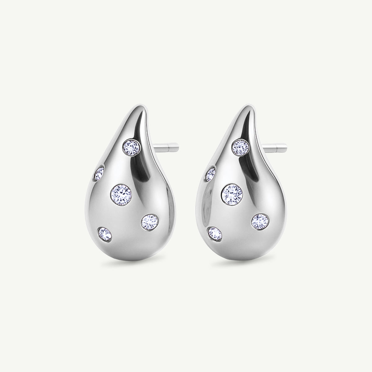 Linee fluide, volumi morbidi e luce pura: gli orecchini a goccia Bubble in oro bianco 18Kt rappresentano l’essenza del design contemporaneo.
