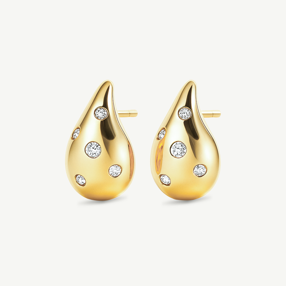 Gli orecchini Bubble a goccia in oro giallo e diamanti incarnano il concetto di lusso contemporaneo.