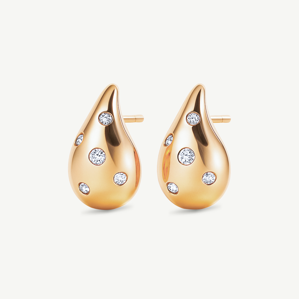 Gli orecchini Bubble a goccia in oro rosa e diamanti incarnano il concetto di lusso contemporaneo.
