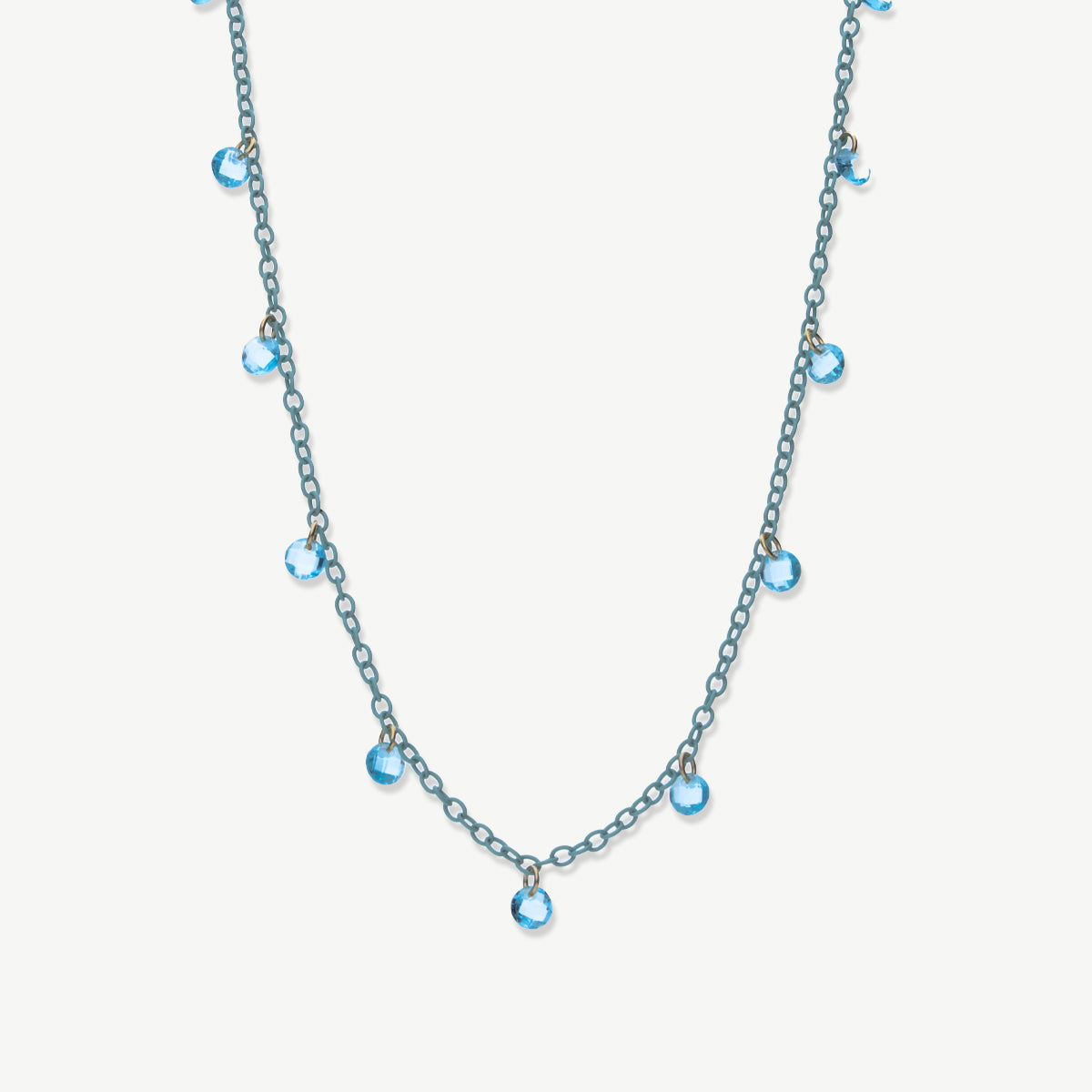 Una collana in argento 925 con cristalli azzurri che unisce stile moderno e delicatezza, ideale per chi desidera un gioiello raffinato ma dal carattere vivace e contemporaneo.