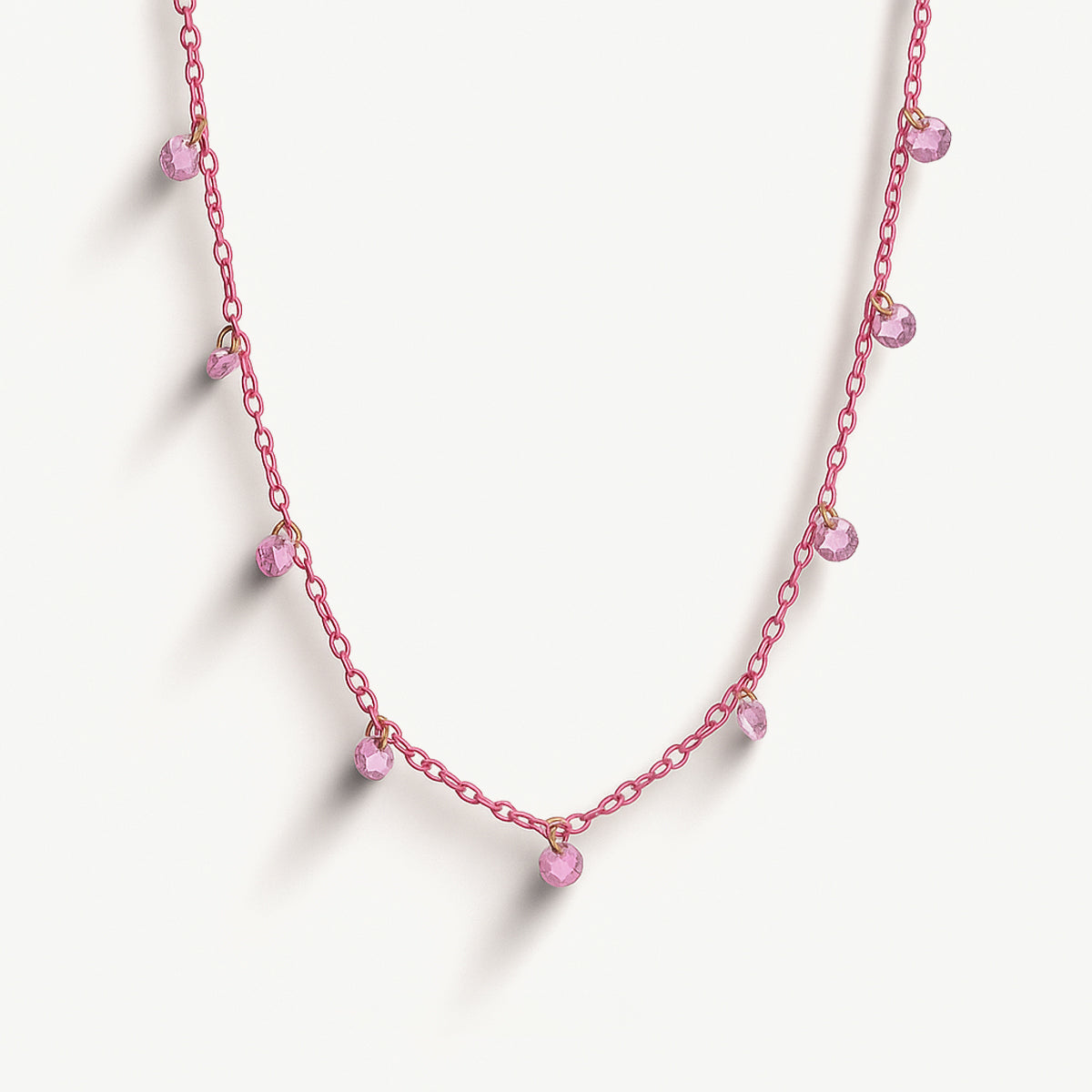 Una collana in argento 925 con cristalli rosa che unisce stile contemporaneo e delicatezza, perfetta per chi ama distinguersi con eleganza e originalità.