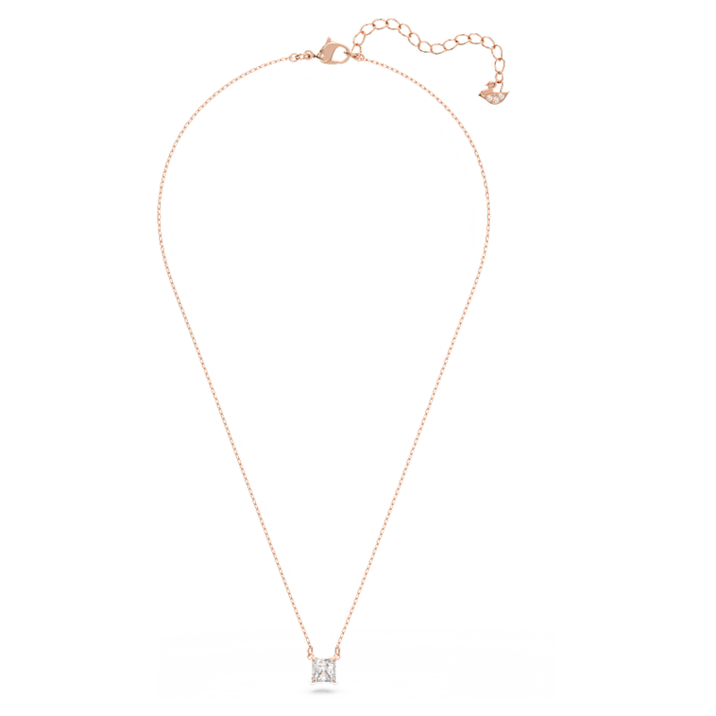 Fondi eleganza e semplicità con la collana Stilla Attract. Intramontabile ed elegante, il design placcato nella tonalità oro rosa presenta una brillante pietra dal taglio quadrato. Ideale per ogni occasione, è un “must” immancabile in ogni collezione di gioielli e perfetta da regalare. Il gioiello è altamente armonizzabile con altre creazioni Swarovski.