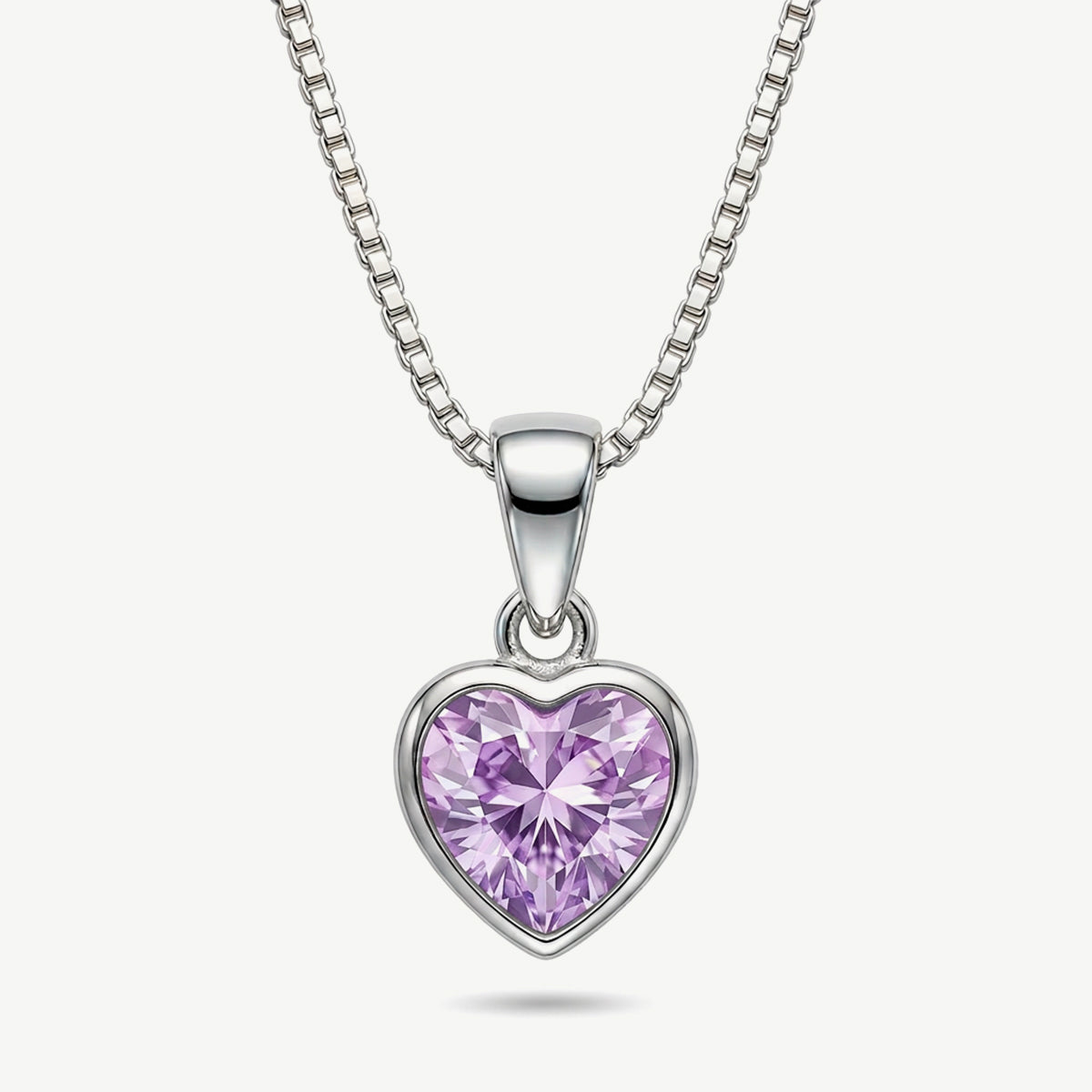 Il pendente è impreziosito da uno zircone viola taglio cuore, una pietra brillante che riflette la luce con splendidi riflessi e dona al gioiello un tocco di colore dolce e raffinato. La montatura a cipollina avvolge la pietra con eleganza, valorizzandone la forma e rendendo il pendente armonioso e luminoso.