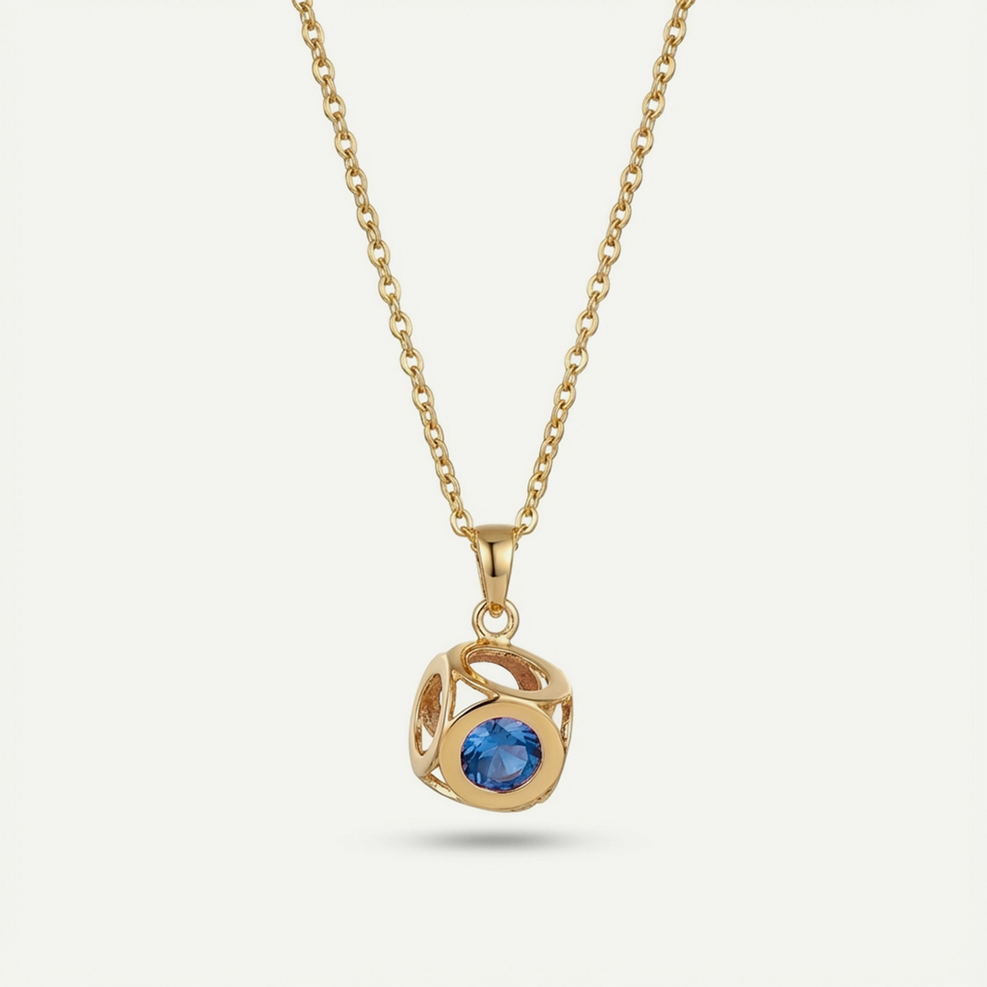 Collana Fabiani in oro 9kt con cubo e zircone blu