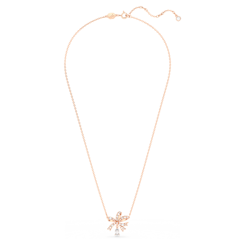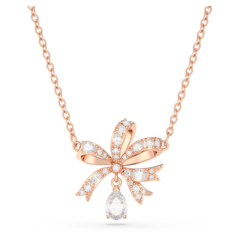 Questa collana della famiglia Hyperbola, caratterizzata da una calda colorazione e da un design che si ispira alla forma di un fiocco, è un regalo romantico perfetto per un’occasione speciale. Placcato color oro rosa, il pendente presenta una serie di splendenti cristalli Cry montati utilizzando la tecnica dello chattonage. L'effetto è completato da due ulteriori delicate pietre: una pietra rotonda al centro del fiocco e un'altra a forma di pera che pende al di sotto della prima. Indossa questo pendente per ravvivare il tuo look di tuttii giorni o come elemento elegante per una serata formale.