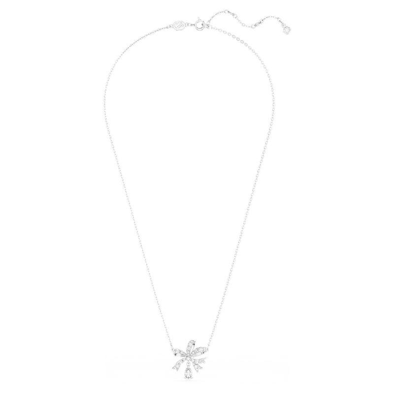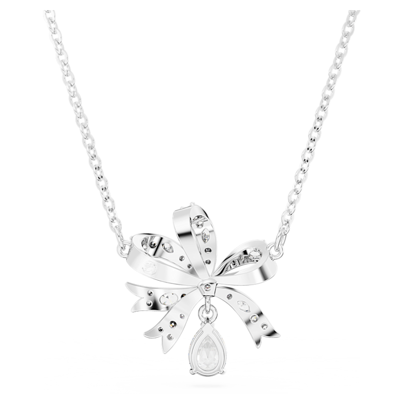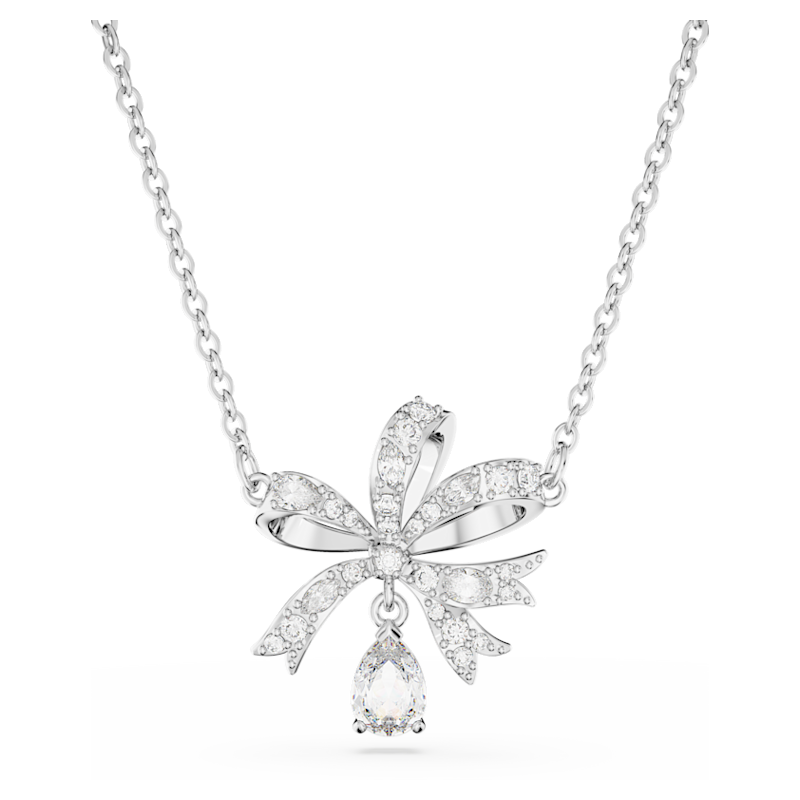 L’elegante lavorazione artigianale di questa collana Hyperbola trasforma un design metallico in un oggetto di autentica bellezza. Incorniciato da un profilo a forma di fiocco, il pendente placcato rodio è impreziosito da una serie di splendenti cristalli Cry montati utilizzando la tecnica dello chattonage. L'effetto è completato da due ulteriori delicate pietre: una pietra rotonda al centro del fiocco e un'altra a forma di pera che pende al di sotto della prima. Questo pendente può essere abbinato ad un anello della stessa collezione, ma sarà anche perfetto come romantico regalo.