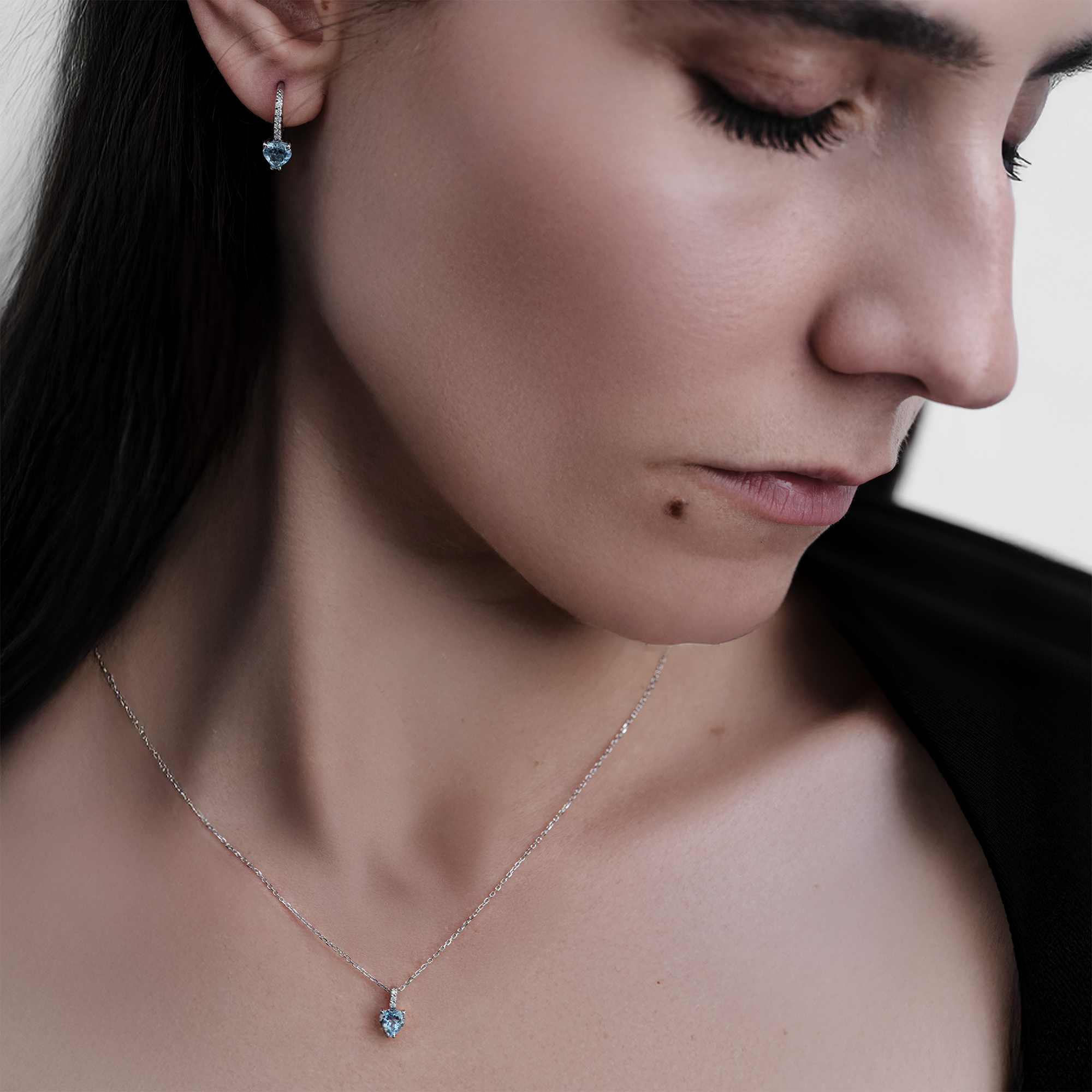 Girocollo in oro bianco 18Kt con pendente con acquamarina da 0,70 Ct e diamanti taglio brillante per complessivi 0,02 Ct.