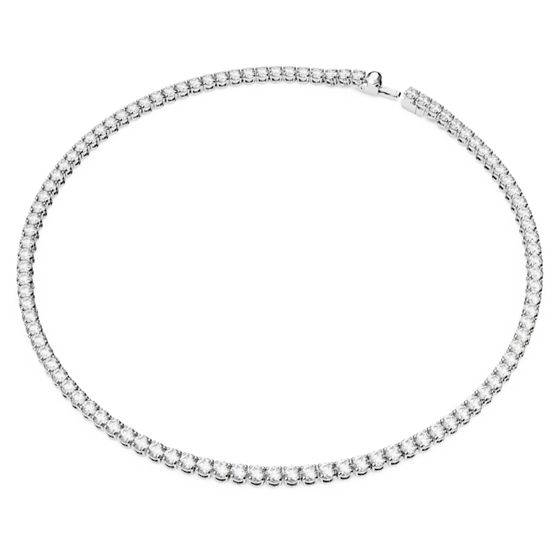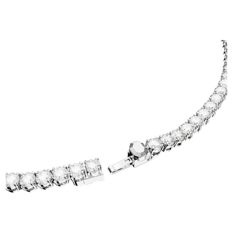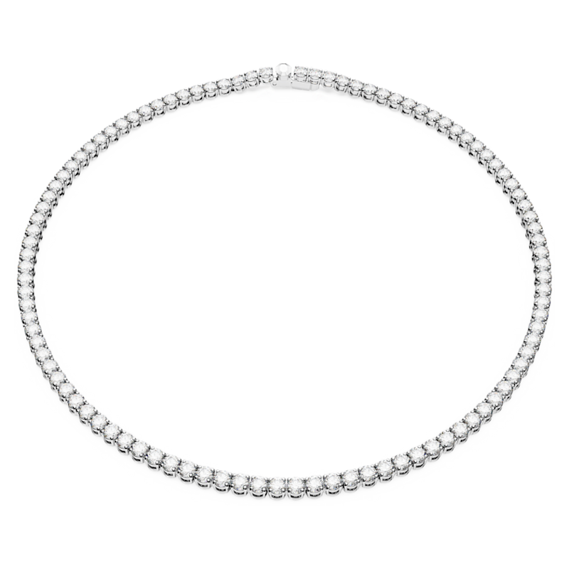 Collana Matrix Tennis, Taglio Round, Piccola, Bianca, Placcato rodio