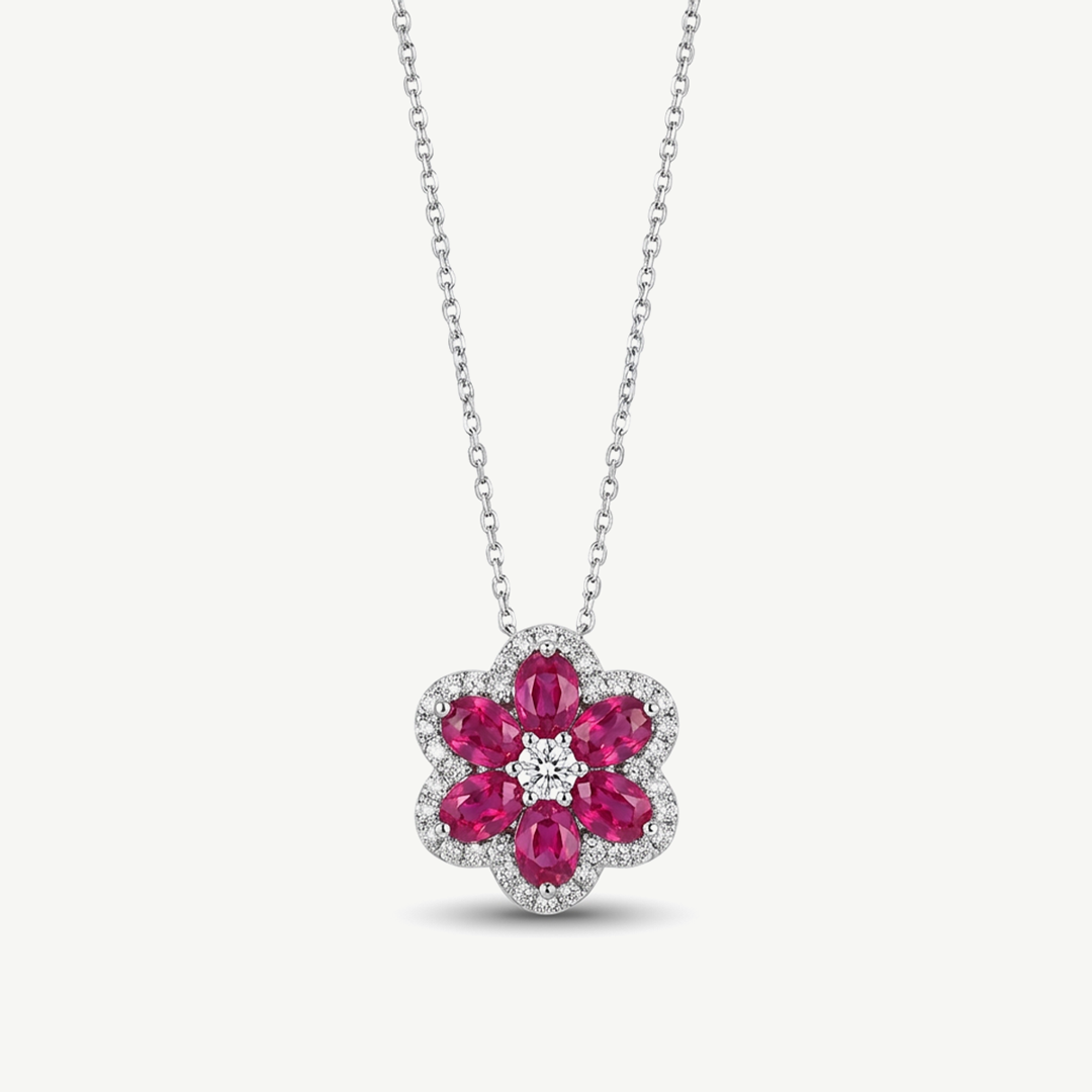 Collana Fabiani Fiore Margherita in oro 18kt con rubini e diamanti