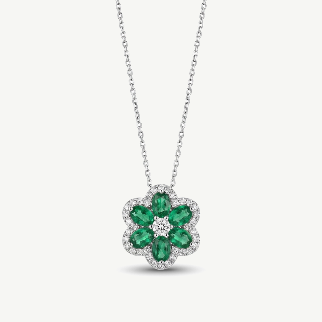 Collana Fabiani Fiore Margherita in oro 18kt con smeraldi e diamanti