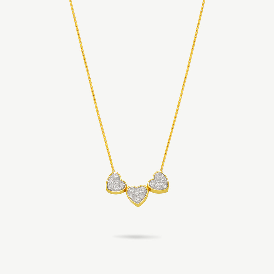 Questa raffinata collana in argento 925 dorato è un gioiello dal design elegante e romantico. Al centro sono presenti tre cuori impreziositi da zirconi bianchi incastonati, che donano brillantezza e luce al decolleté. Ogni cuore misura circa 4,40 mm, creando un delicato gioco di armonia e luminosità.