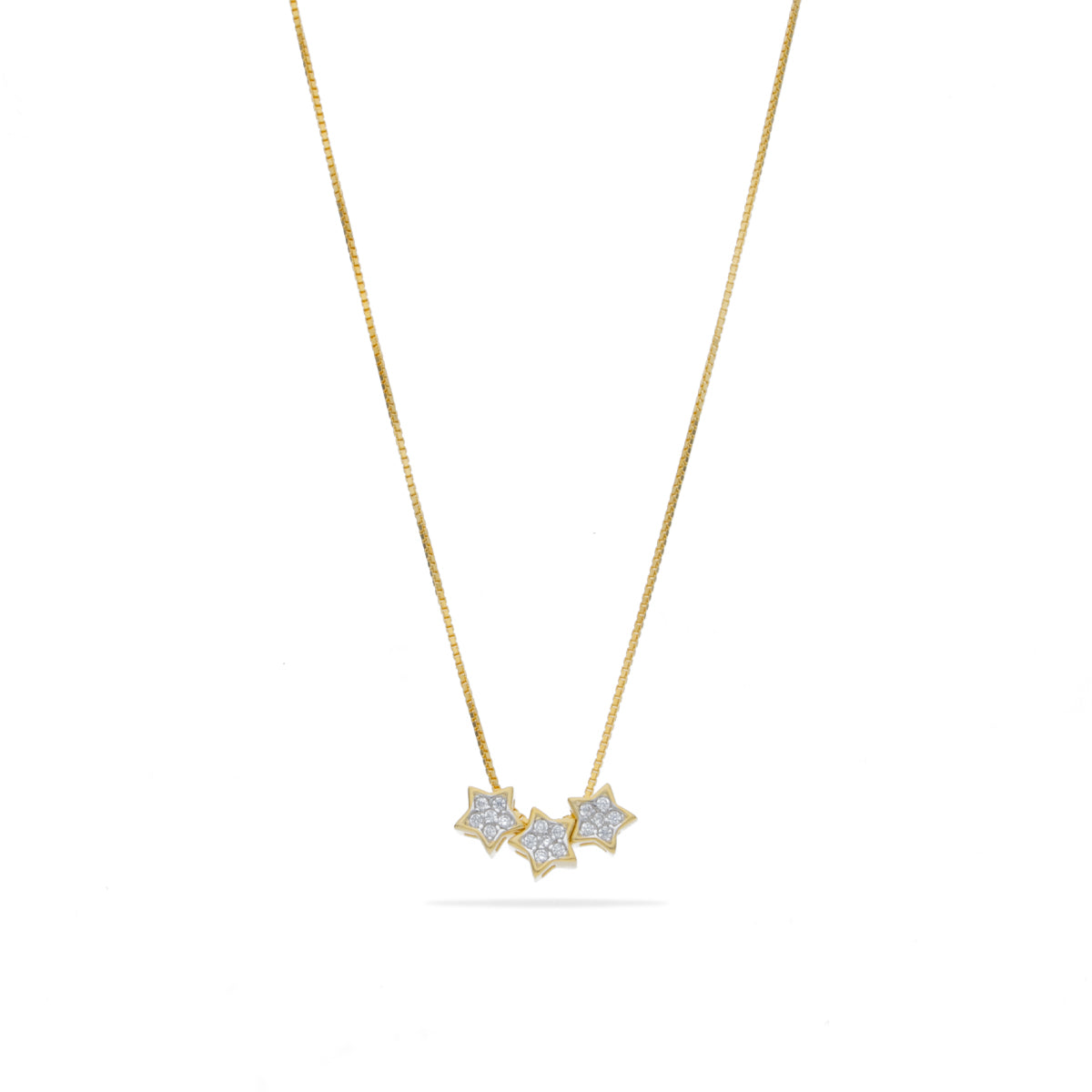 Questa collana in argento 925 dorato con 3 stelle è un gioiello moderno e raffinato, pensato per chi ama uno stile luminoso e di tendenza. Le tre stelle centrali sono impreziosite da zirconi bianchi incastonati, che regalano brillantezza e un tocco di eleganza al decolleté. Ideale da indossare ogni giorno o per impreziosire look speciali.