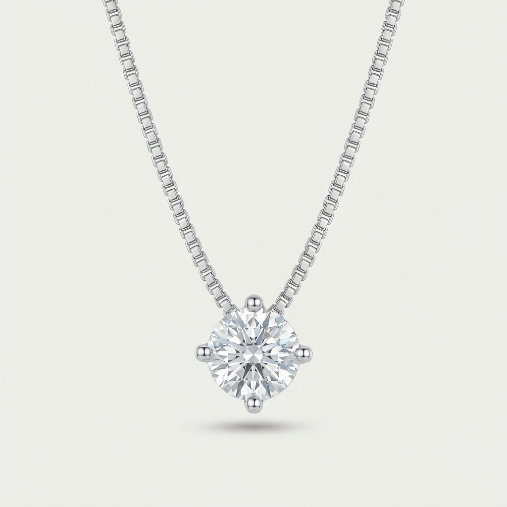La pietra centrale è incastonata in una classica montatura a 4 griffes, studiata per valorizzare al massimo la luce e donare un effetto luminoso naturale e continuo. La caratura da 0,50 ct rappresenta il perfetto equilibrio tra eleganza discreta e presenza visiva, rendendo questa collana ideale sia per l’uso quotidiano sia per occasioni speciali.