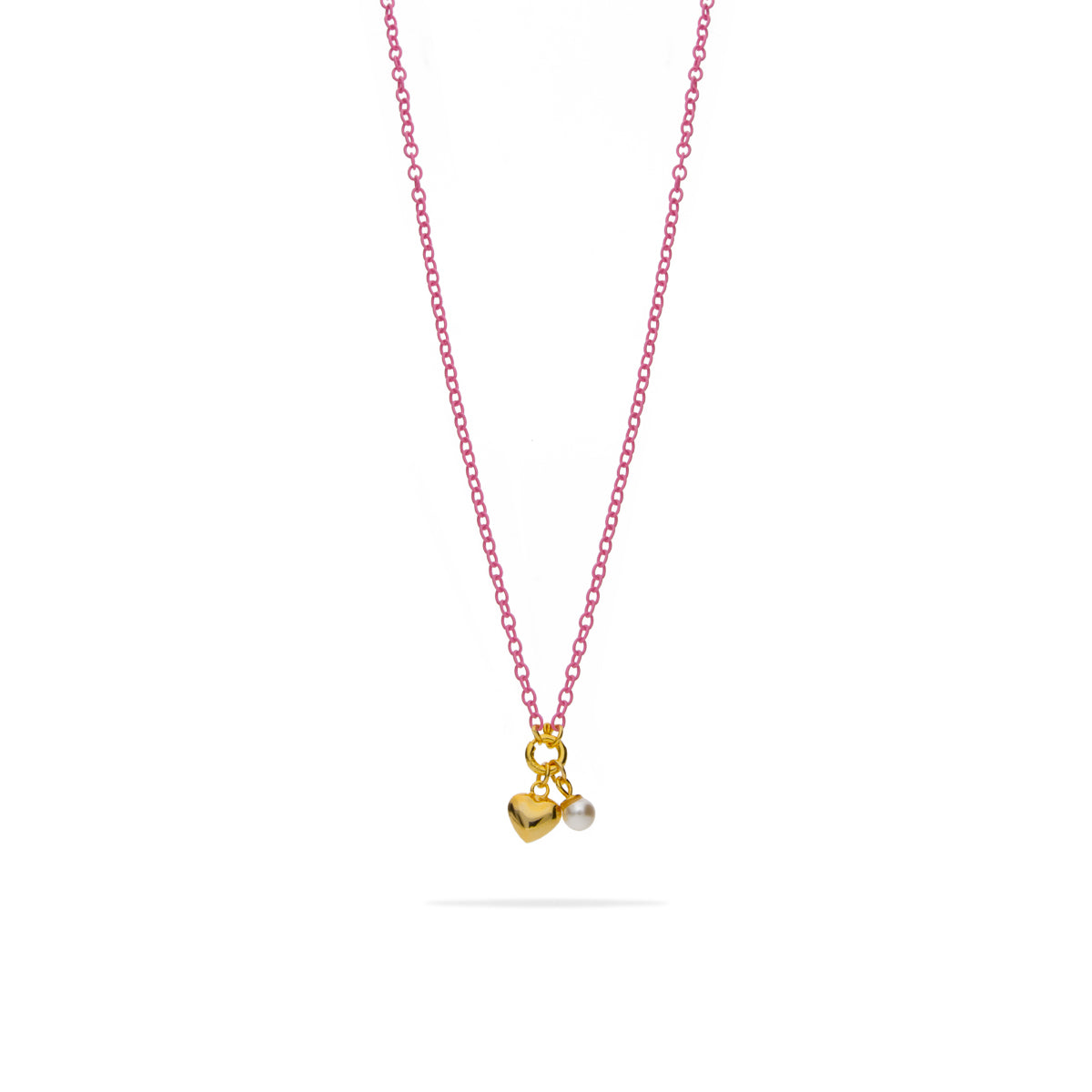 Questa collana Fabiani in argento 925 è un gioiello moderno e originale che unisce design e significato. La catena, smaltata rosa, dona un tocco fresco e contemporaneo, mentre i due charm pendenti aggiungono personalità e dolcezza: un cuore dorato di circa 6 mm e una perlina bianca di circa 4 mm.