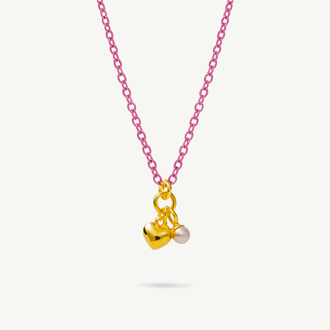 Questa collana Fabiani in argento 925 è un gioiello moderno e originale che unisce design e significato. La catena, smaltata rosa, dona un tocco fresco e contemporaneo, mentre i due charm pendenti aggiungono personalità e dolcezza: un cuore dorato di circa 6 mm e una perlina bianca di circa 4 mm.