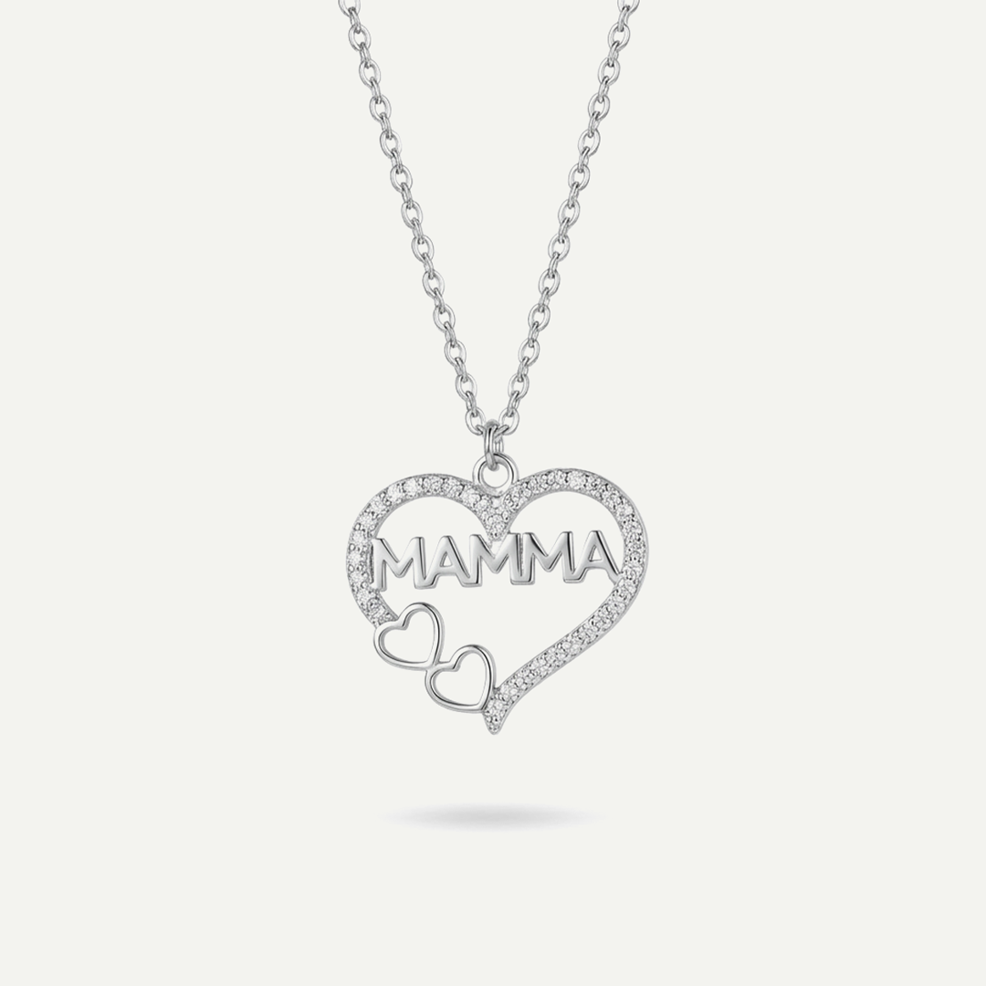 La collana Meridien in acciaio con cuore “Mamma” è un gioiello dal forte valore simbolico, pensato per celebrare l’amore più puro e incondizionato. Il pendente presenta un cuore luminoso impreziosito da pietre brillanti, all’interno del quale spicca la scritta MAMMA, accompagnata da due piccoli cuori che rappresentano affetto, protezione e legame eterno.