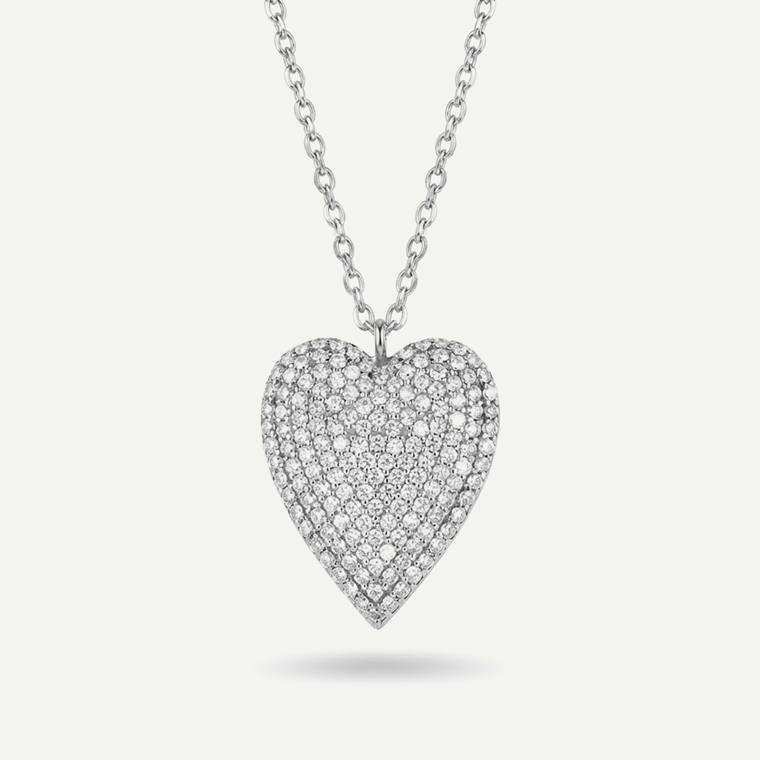La collana Meridien in acciaio con cuore pavé è un gioiello elegante e luminoso, perfetto per chi desidera indossare un simbolo forte e romantico. Il pendente a forma di cuore è interamente ricoperto da micro-pietre scintillanti, disposte in modo uniforme per creare un effetto pavé ricco, brillante e di grande impatto visivo.