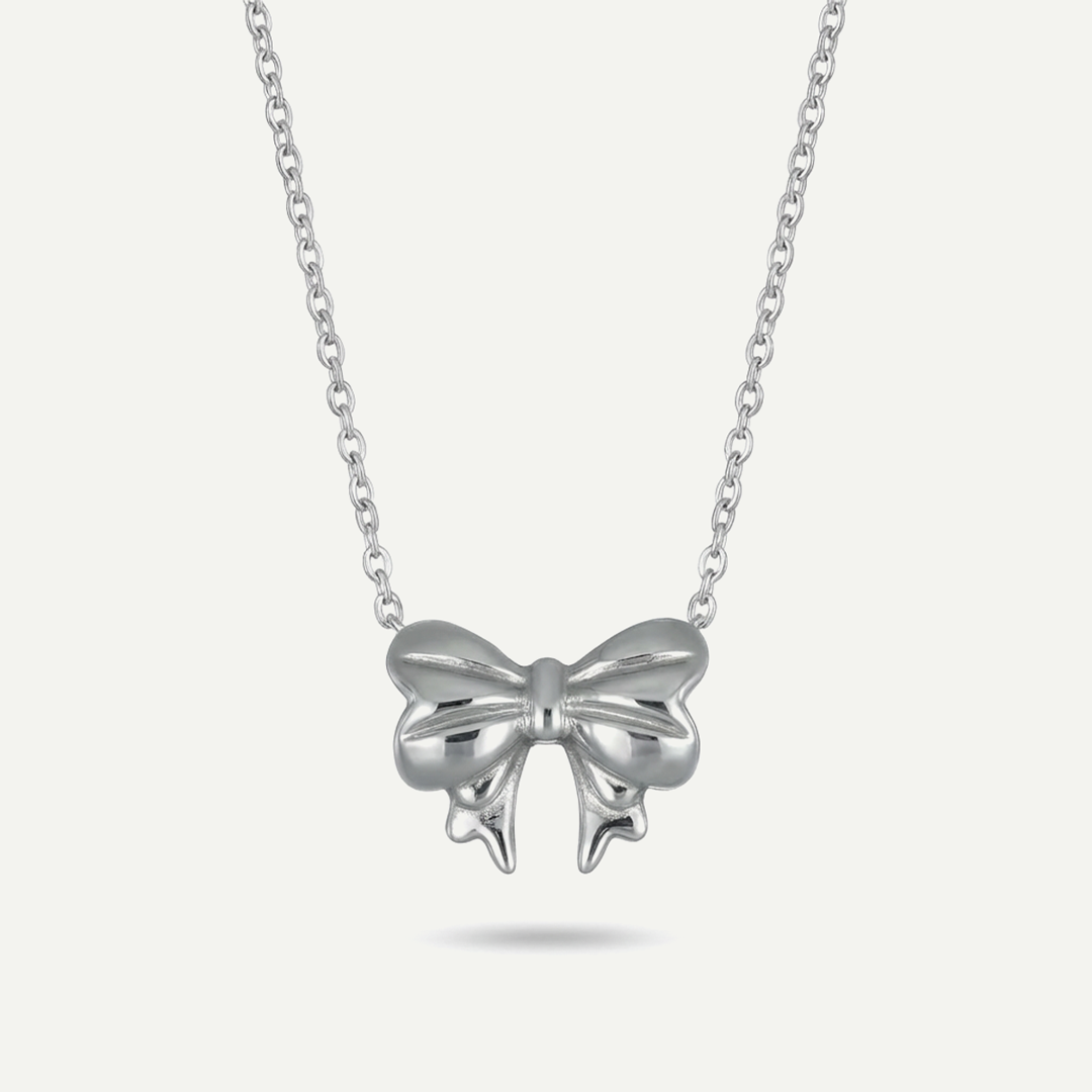 Realizzata in acciaio resistente e brillante, questa collana mantiene la sua luminosità nel tempo, risultando perfetta per l’uso quotidiano. Il pendente a fiocco presenta una lavorazione morbida e tridimensionale che dona profondità e carattere al gioiello.