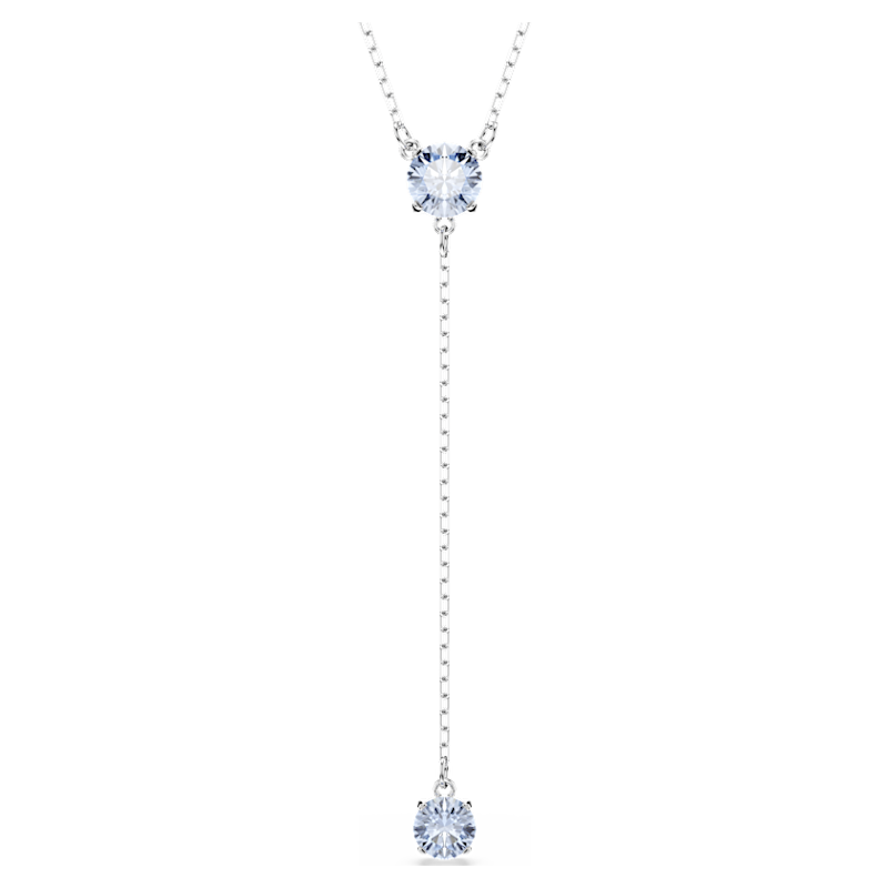 Elegantemente modellata e infusa di colore, questa collana è una pura espressione del gioioso stile di Swarovski. Il design placcato rodio presenta un cristallo centrale taglio Round in blu, con un altro sospeso da una delicata catena sottostante. Indossa questa luminosa creazione per far risplendere il tuo look per qualsiasi occasione speciale.