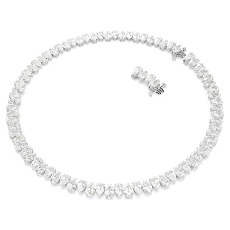 Questa collana Matrix Tennis, con i suoi tagli distintivi, conduce lo stile Tennis in una nuova ed affascinante direzione. Il design placcato rodio presenta un filo girocollo di Swarovski Zirconia trasparenti a forma di goccia. Un flusso quasi infinito di cristalli sfaccettati che conferiranno al tuo look un luminoso tocco di energia.