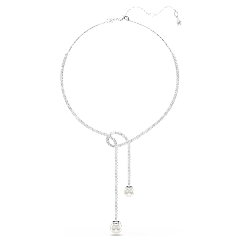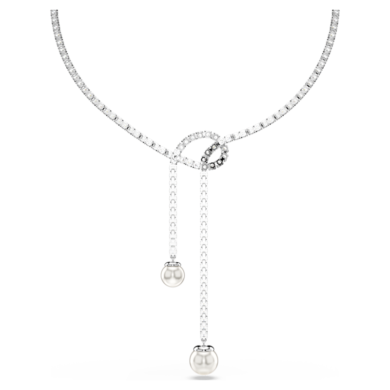 Questa collana Matrix, che presenta un originale design con annodatura, è l’apoteosi dell’eleganza moderna. Alternando sezioni fisse e a sezioni flessibili, questo filo che avvolge il collo presenta Swarovski Zirconia trasparenti montate a griffe ed è impreziosito ad ogni estremità da una Crystal Pearl Swarovski bianca. Completa il look con un paio di orecchini Matrix coordinati.