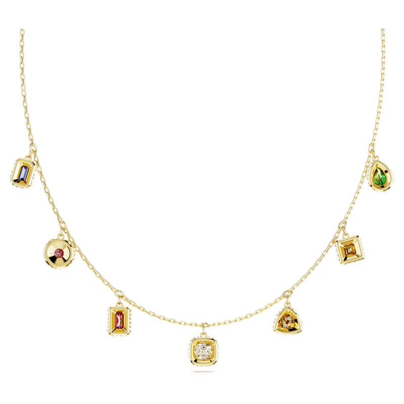 Indossa questa eclettica collana Chroma e sublima il tuo stile con gocce di brillante colore. Realizzato con una montatura placcata color oro e una chiusura a moschettone, questo design presenta una varietà di tagli di Swarovski Zirconia in sette colori complementari. Ogni pietra è circondata da cristalli quadrati più piccoli che le conferiscono ulteriore brillantezza, dando vita a una collana che non smetterà mai di brillare. Abbina la collana ad eleganti orecchini della stessa famiglia o regalala a una persona cara.