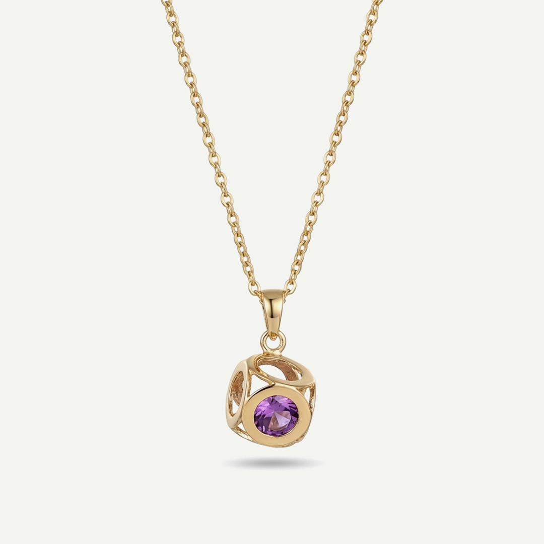 Elegante e contemporanea, questa collana Fabiani argento 925 è caratterizzata da un raffinato pendente a cubo in oro giallo 9 carati, impreziosito da un intenso zircone viola incastonato al centro. Un gioiello dal design geometrico che unisce stile moderno e luminosità sofisticata.